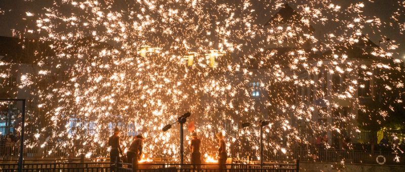 (5)在香国公园百姓广场,开展中敖火龙表演、打铁花、鲤鱼灯等特色民俗表演、巡游。