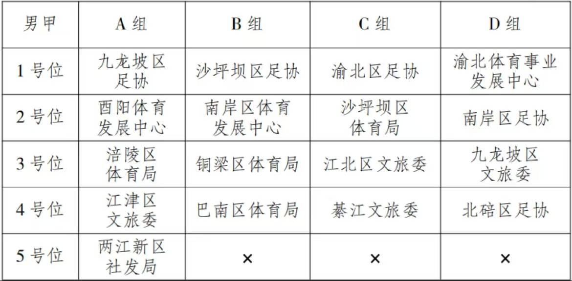 其中,男子甲组17支队伍分成4个小组,其中A组5支队伍,B-D组每组4支队伍。女子甲组的13支队伍,分成4个小组,其中A组4支队伍,B-D组每个小组3支队伍。