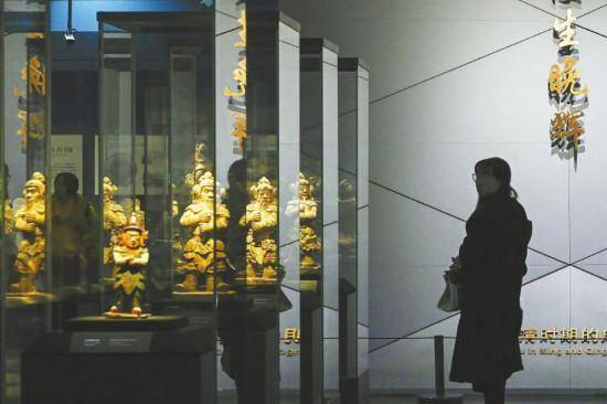 1月11日,成都博物馆内,年轻人正在参观《花重锦官城:成都历史文化陈列(古代篇)》展览。