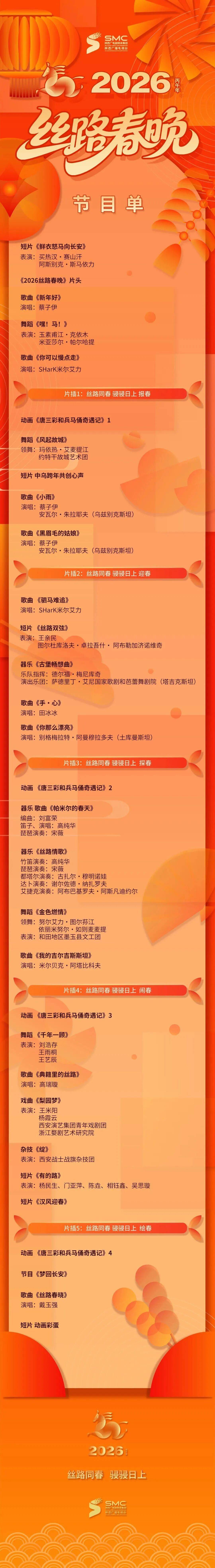 由陕西广电融媒体集团(陕西广播电视台)联合新华社新媒体中心,以及中亚国家媒体机构联袂打造的2026丝路春晚,以“丝路同春 骎骎日上”为主题,跳出单向传播模式,开创“多国联办、双向奔赴”的全新格局,让丝路精神在视听语言中具象可感。