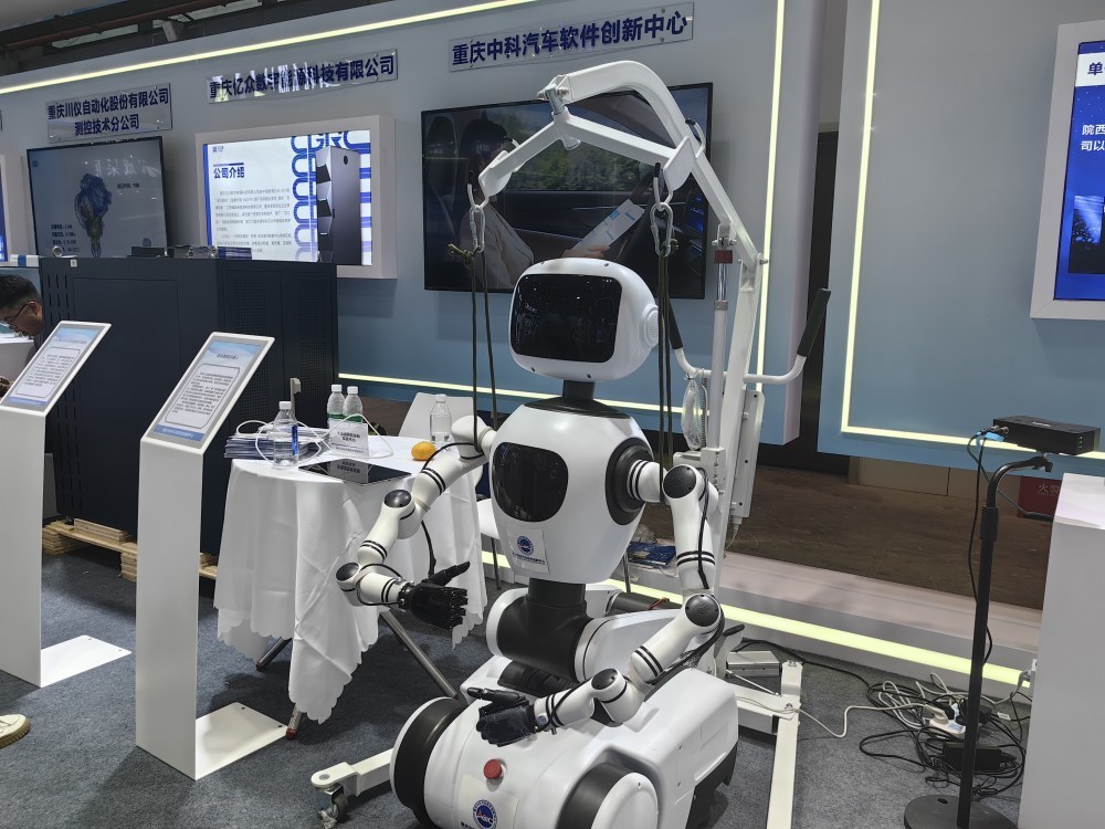 就在机械臂的旁边,由重庆中科汽车软件创新中心带来的具身机器人,也成为备受瞩目的焦点。